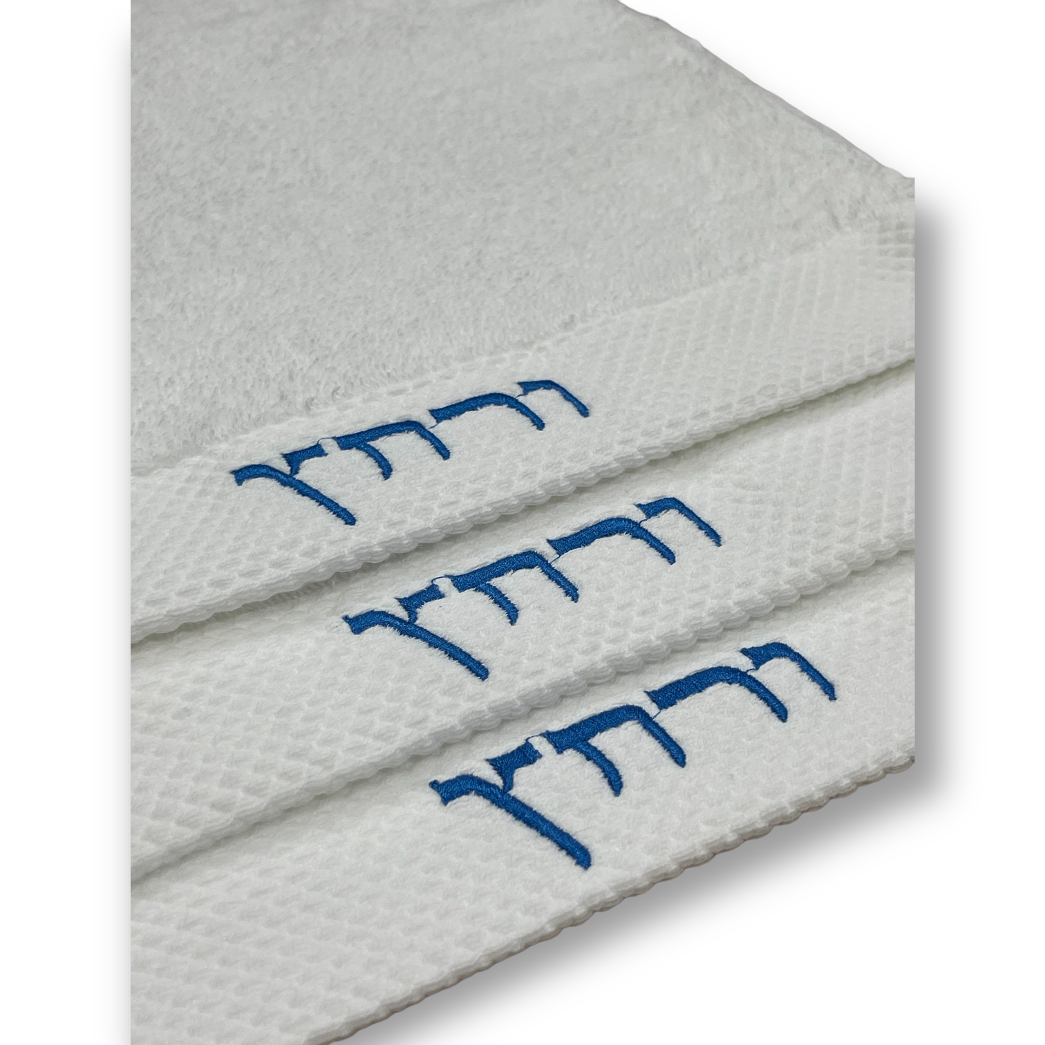 12 x 12” 3 pack ורחץ Urchaz Passover/Pesach Embroidered Hand Towels Blue.