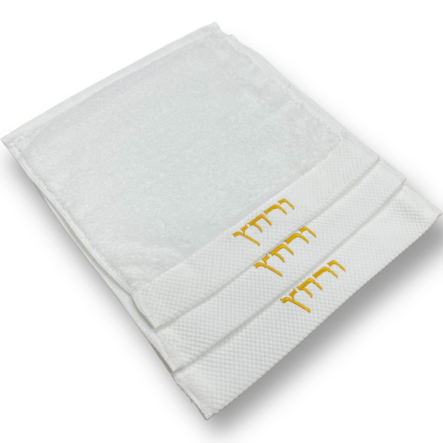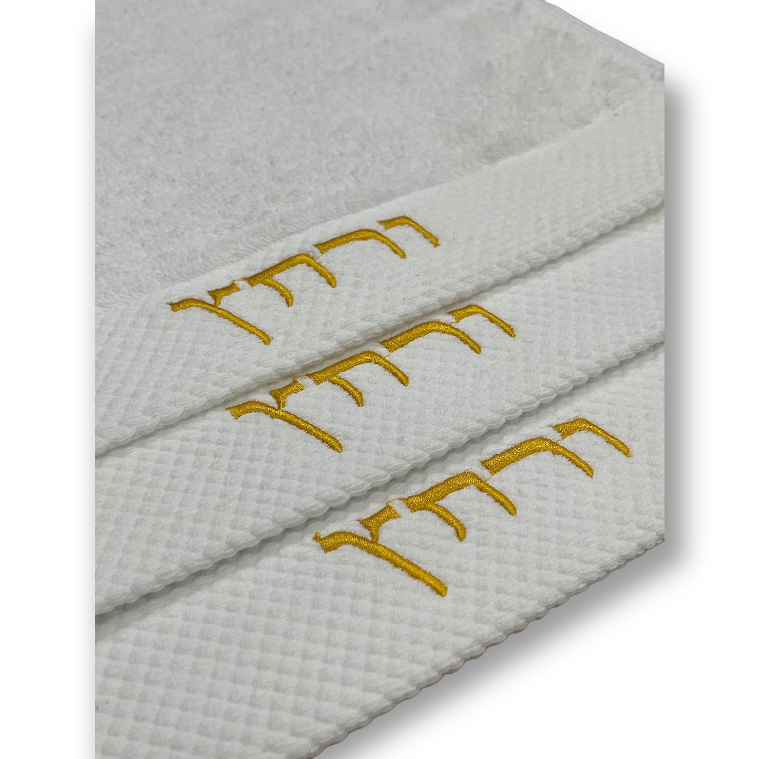 12 x 12” 3 pack ורחץ Urchaz Passover/Pesach Embroidered Hand Towels Gold