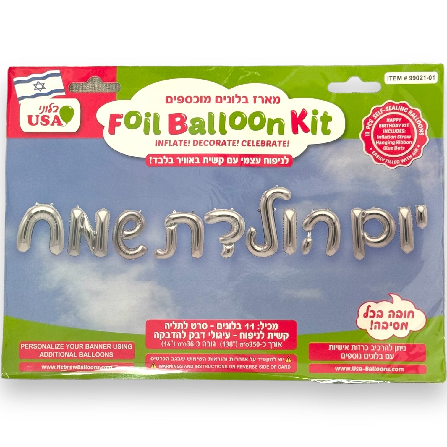 5 16" Airfill Only Happy Birthday Hebrew Silver Kit Foil Balloon