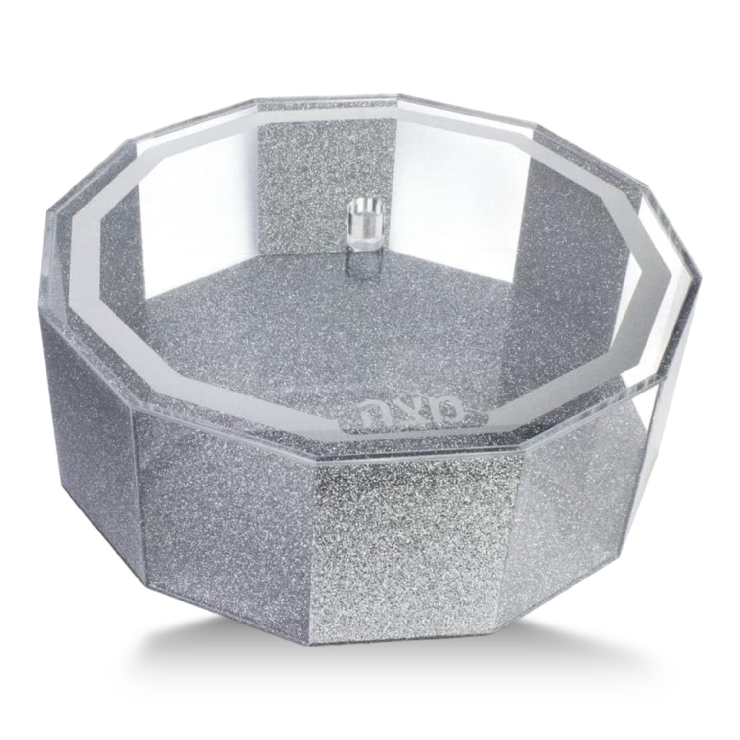 Decorate your Seder table with this beautiful Acrylic Matzah Box With Lid Hexagon Holder Lucite silver