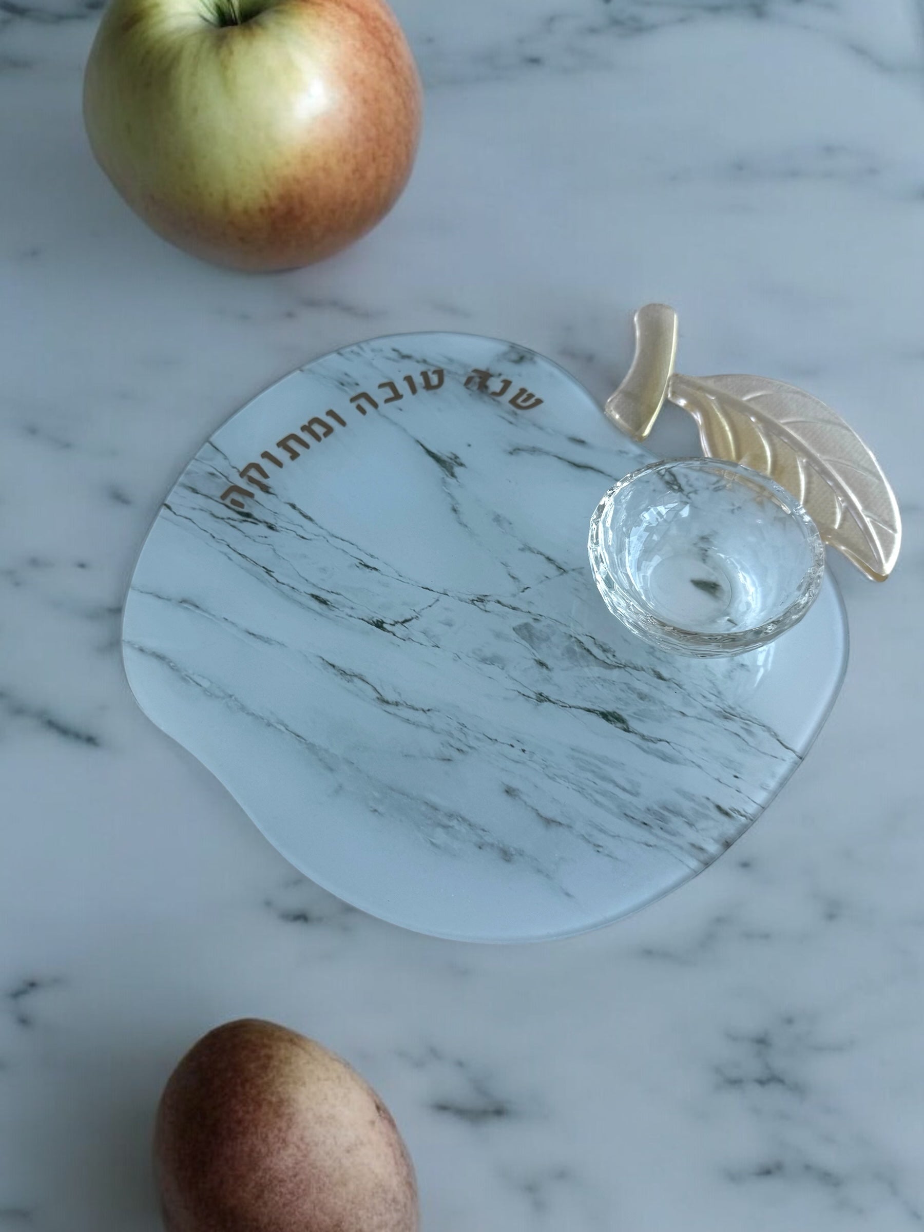 Celebrate the sweetness of the new year with this beautifully crafted apple-shaped honey dish, perfect for Rosh Hashanah. Made to resemble the symbolic fruit of the holiday, this dish brings a festive touch to your table. Ideal for dipping apples into honey, it combines tradition and elegance, making it a wonderful centerpiece for your holiday meal. A delightful addition to your celebration or a thoughtful gift for loved ones!