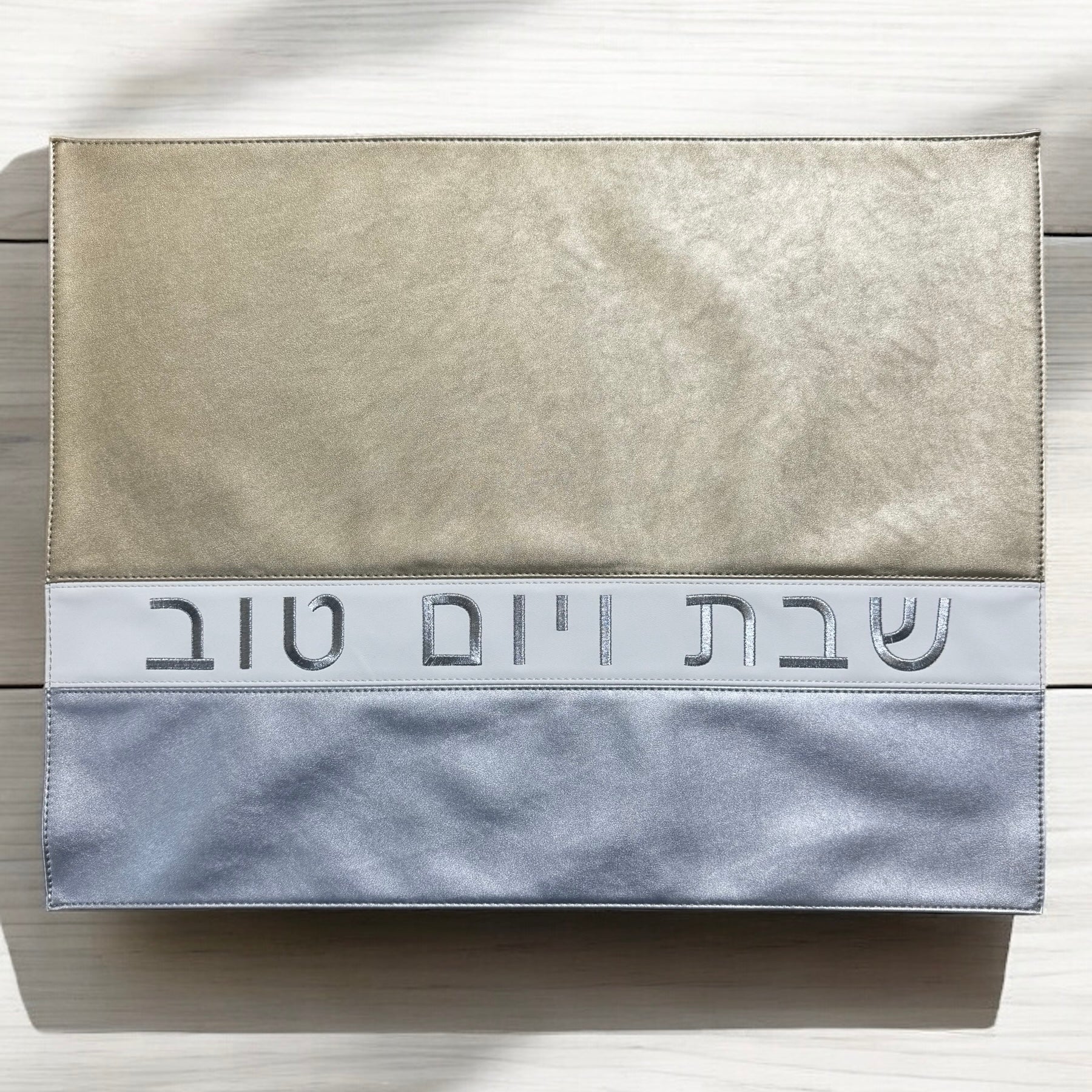 Three-Tone Vinyl Challah Cover with Embroidered שבת ויום טוב