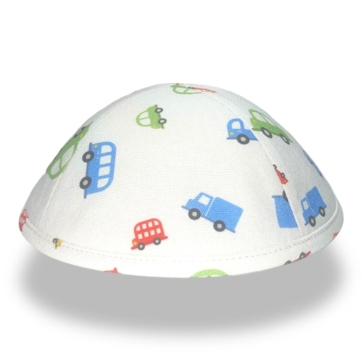 Beautiful Cotton Kippah - 4 Panel Design Yarmulke with hair clip for Jewish boys and man Cars or alef beit