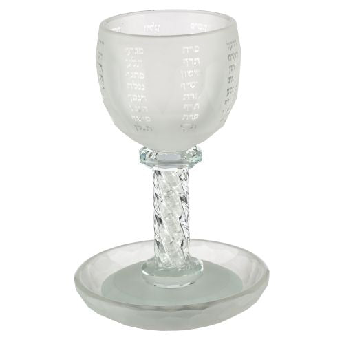 Crystal Kiddush Cup "The Bible Rivers" 16 cm with plate