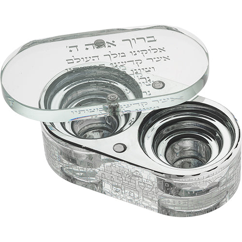 Jerusalem engraved Crystal Travel Candlesticks 10x5 cm great gift