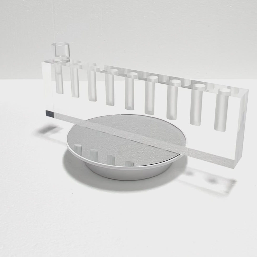 This gorgeous fancy modern lucite oil menorah will be an amazing addition to your Hanukkah celebration.