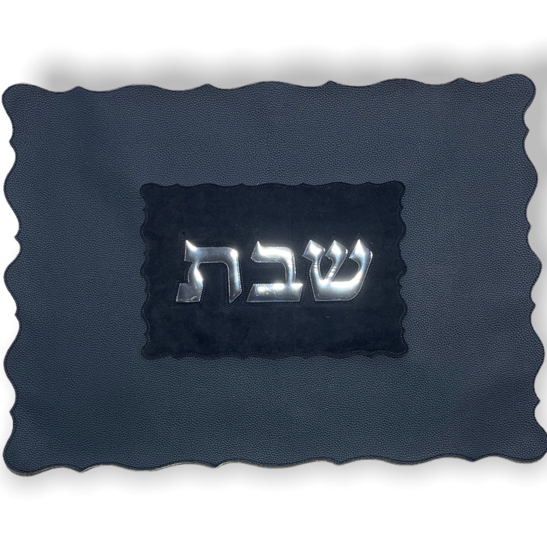 Gorgeous luxurious leather like Challah Cover -Black and Silver laser cut, wavy edges for shabbat 17 x 21"
