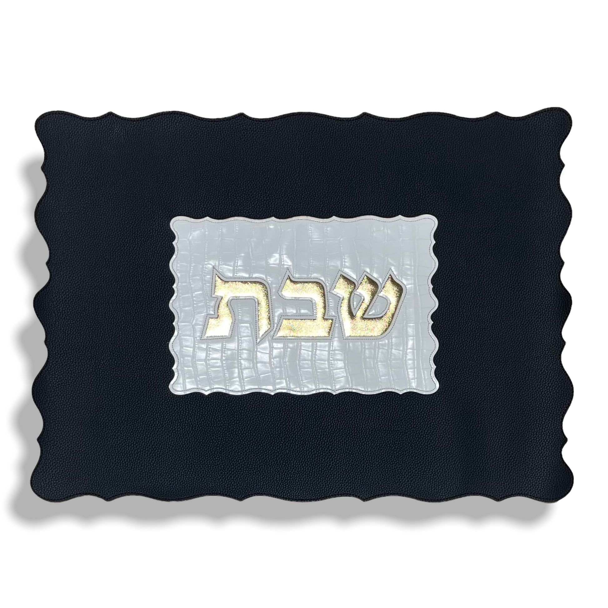 Gorgeous luxurious leather like Challah Cover -Black, White and gold laser cut, wavy edges for shabbat 17 x 21"