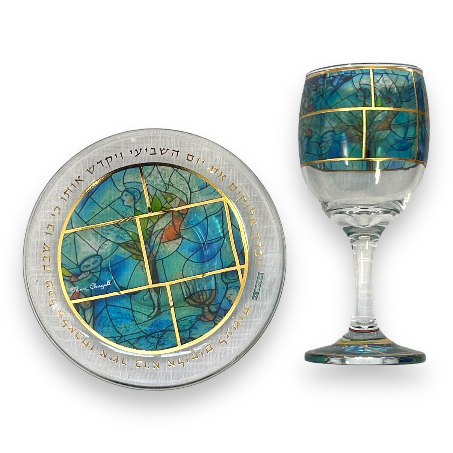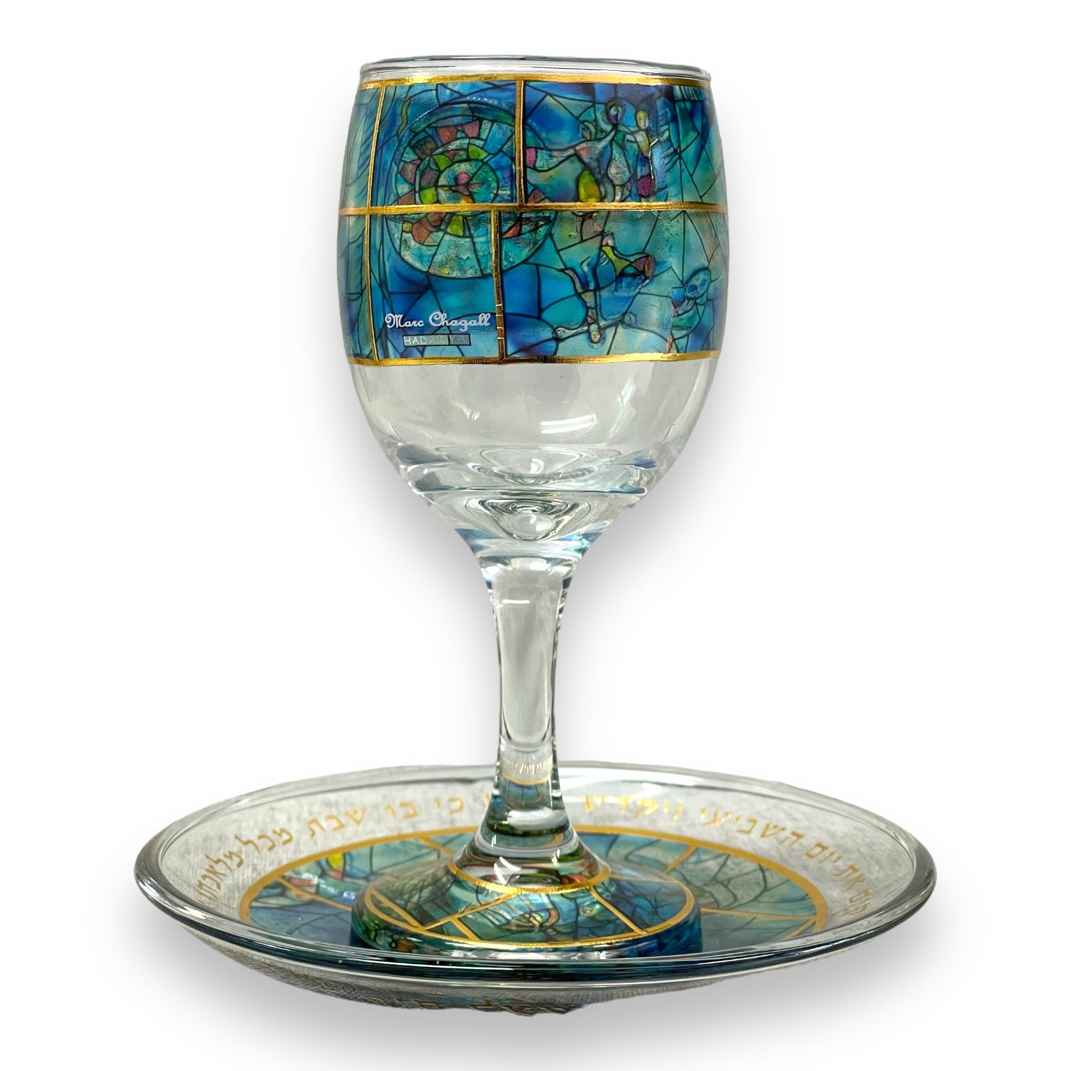 Hadarya kiddush glass with plate Blue marc chagall