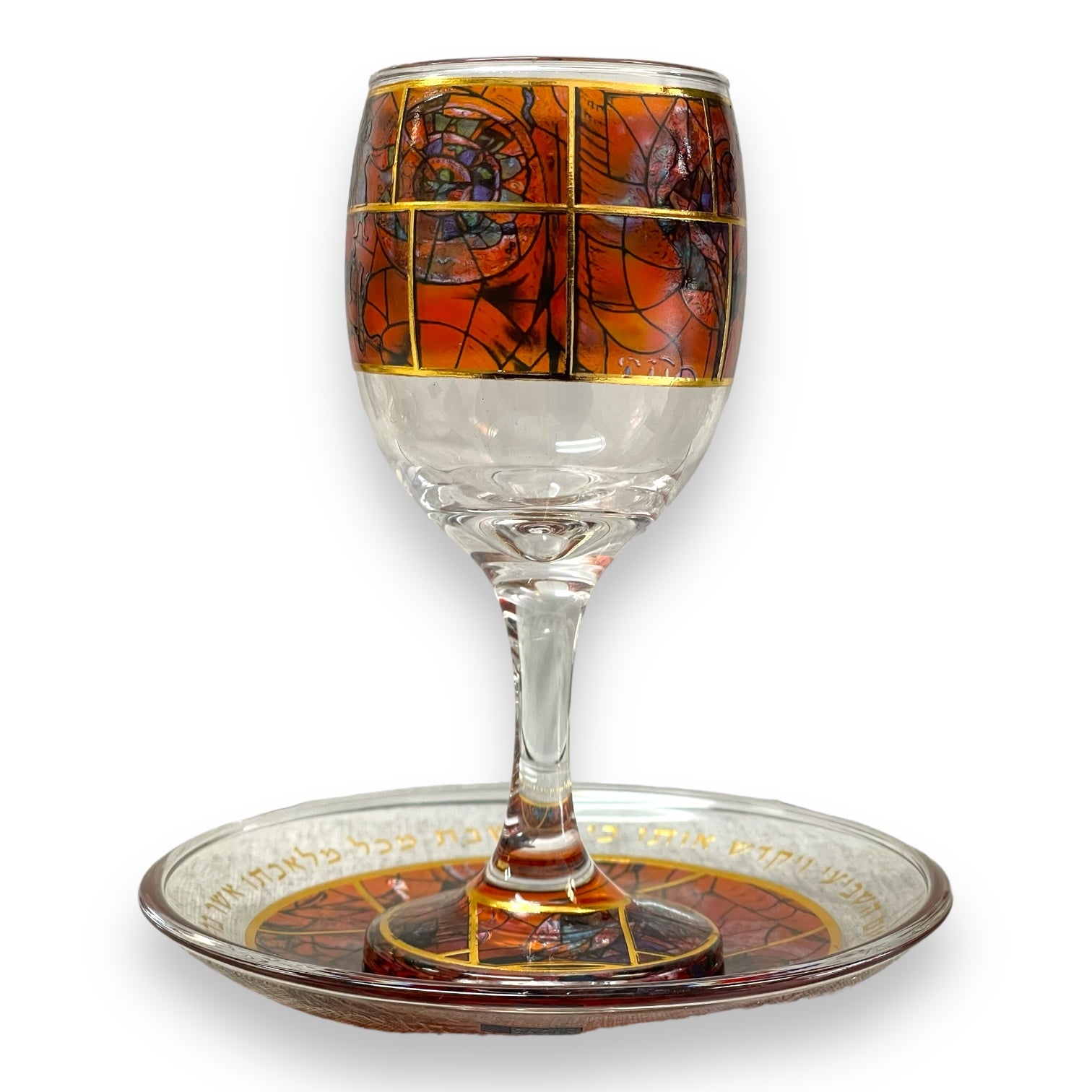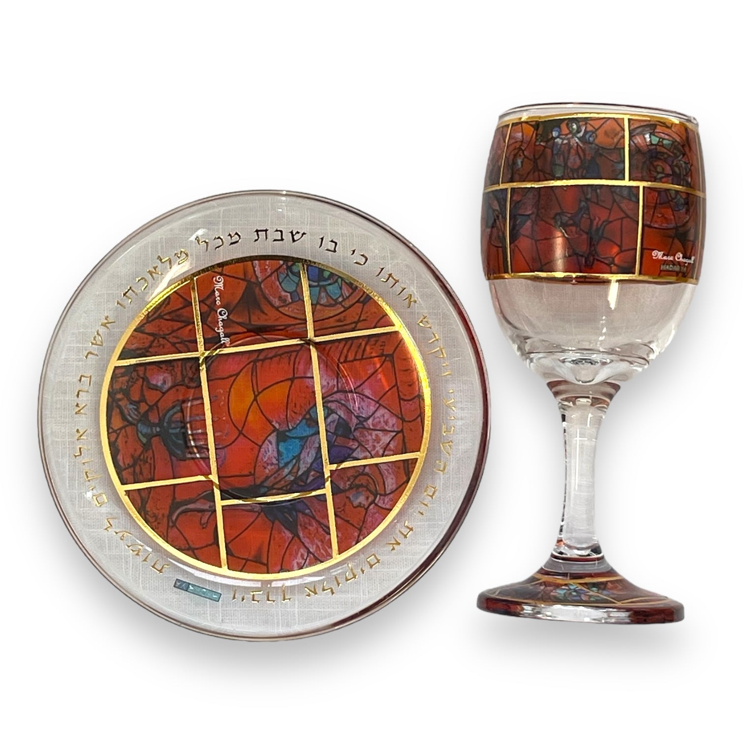 Hadarya kiddush glass with plate Red marc chagall