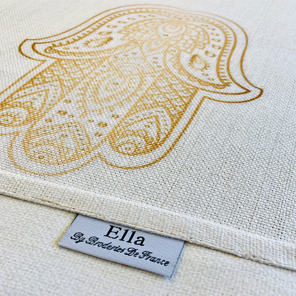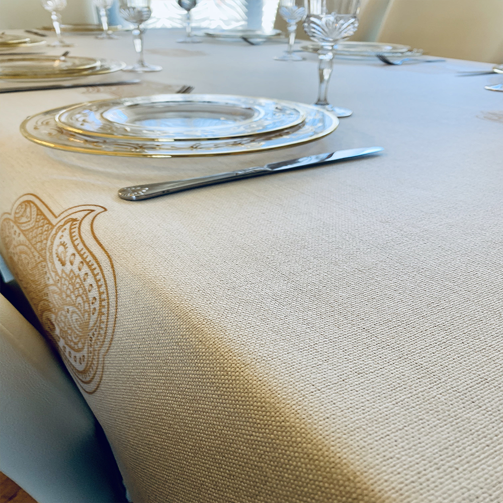 Gold Hamsa Tablecloth. Original Design by Broderies de France