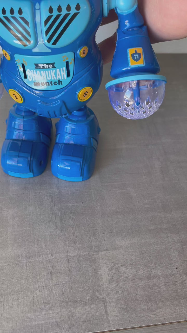 Hanukkah lights and dancing mentch robot