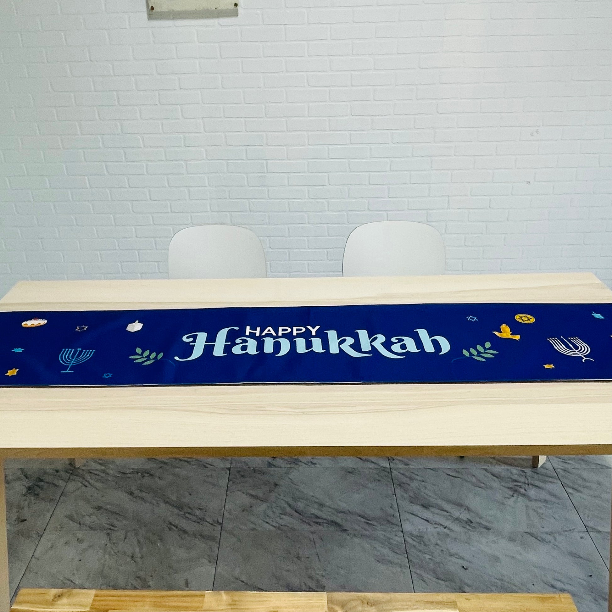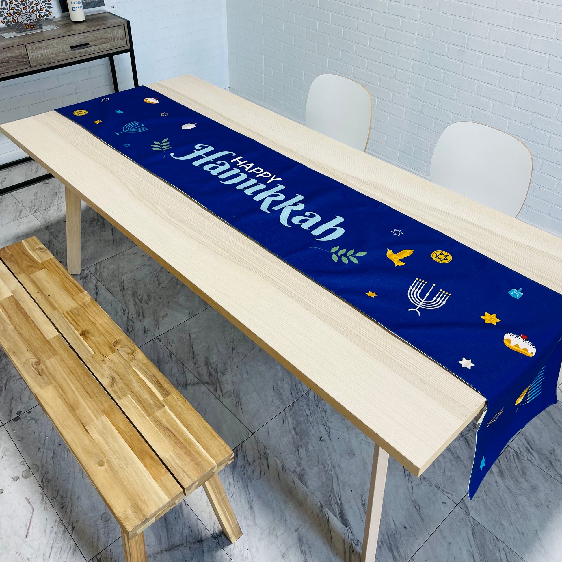 Happy Hanukkah linen cotton table runner