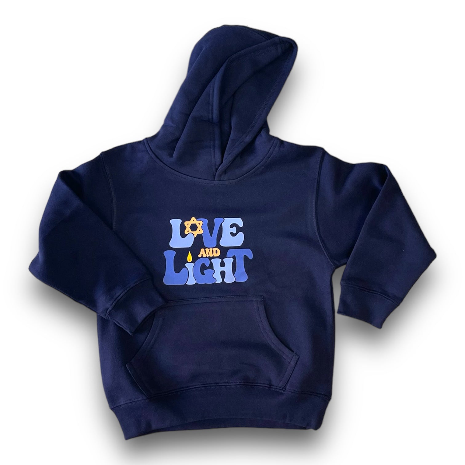Love and Light fun youth Hanukkah hoodie