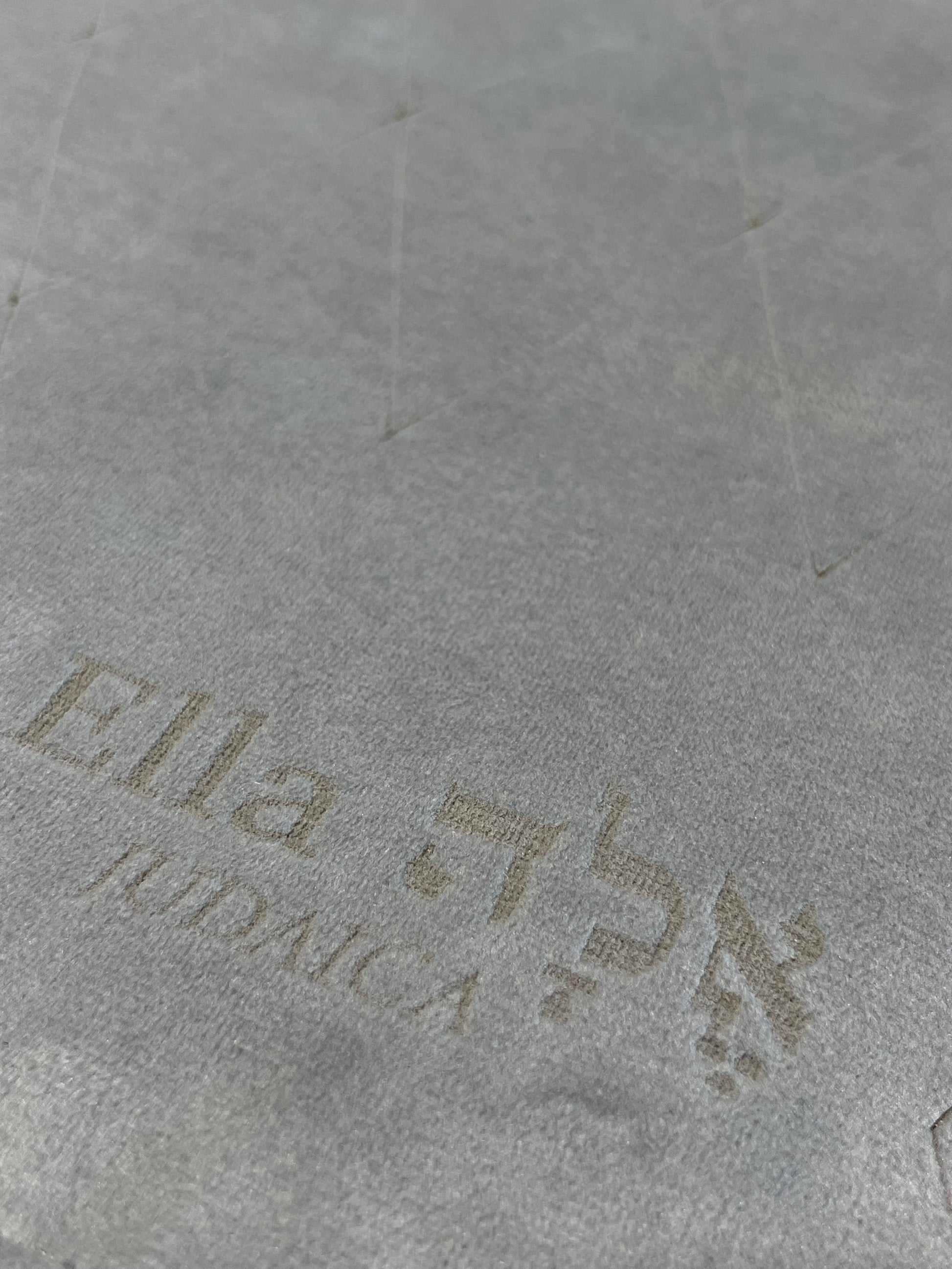 Add a touch of luxury to your Shabbat dinner table with this glamorous challah cover! Made of supple faux leather and velvet, this design features laser-cut and the word “Shabbat” in gorgeous metallic lettering. This elegant product makes an excellent gift for engagements, anniversaries, and other important simchas.