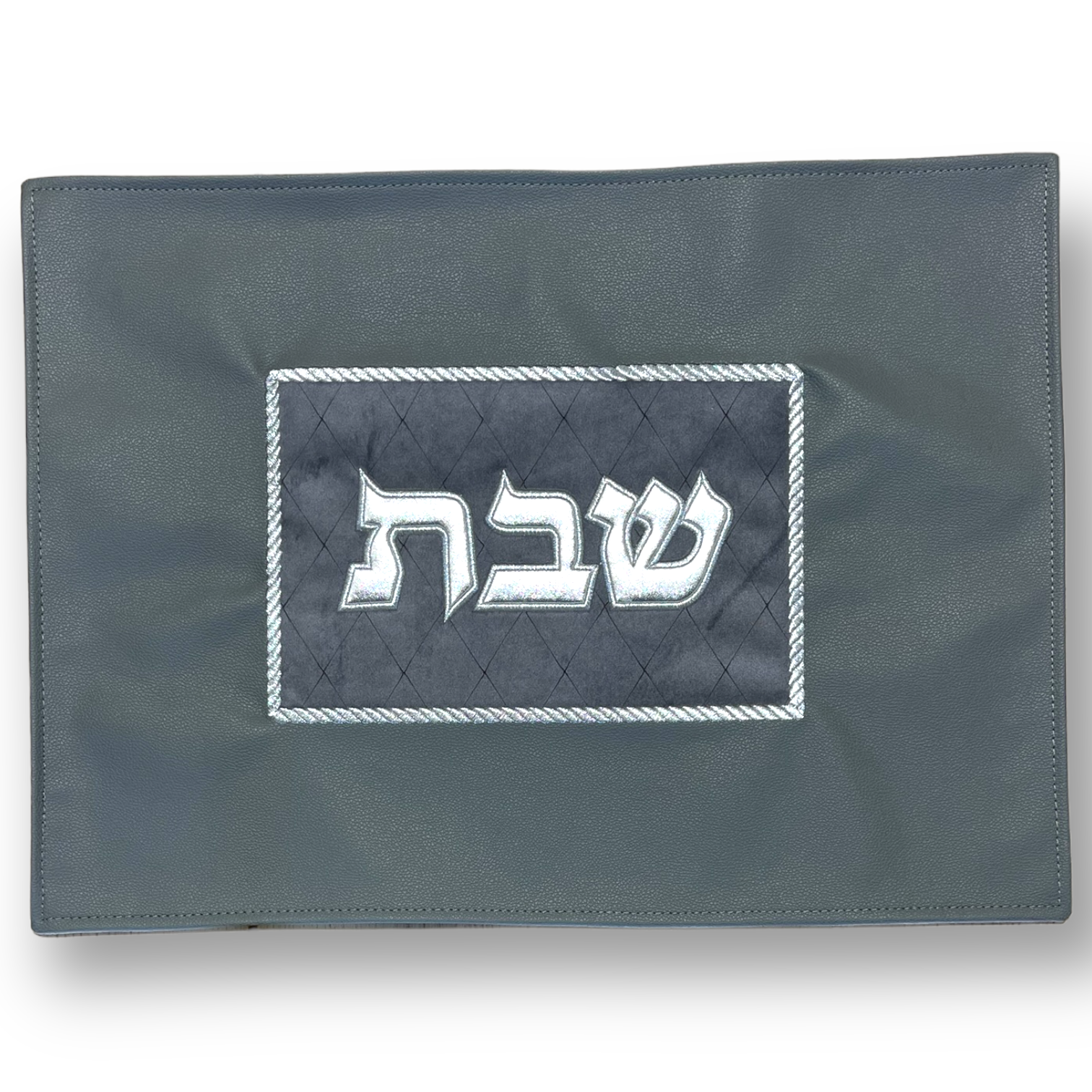Luxurious leather like Challah Cover - grey with beautiful silver embroidered frame for shabbat shabbat decor