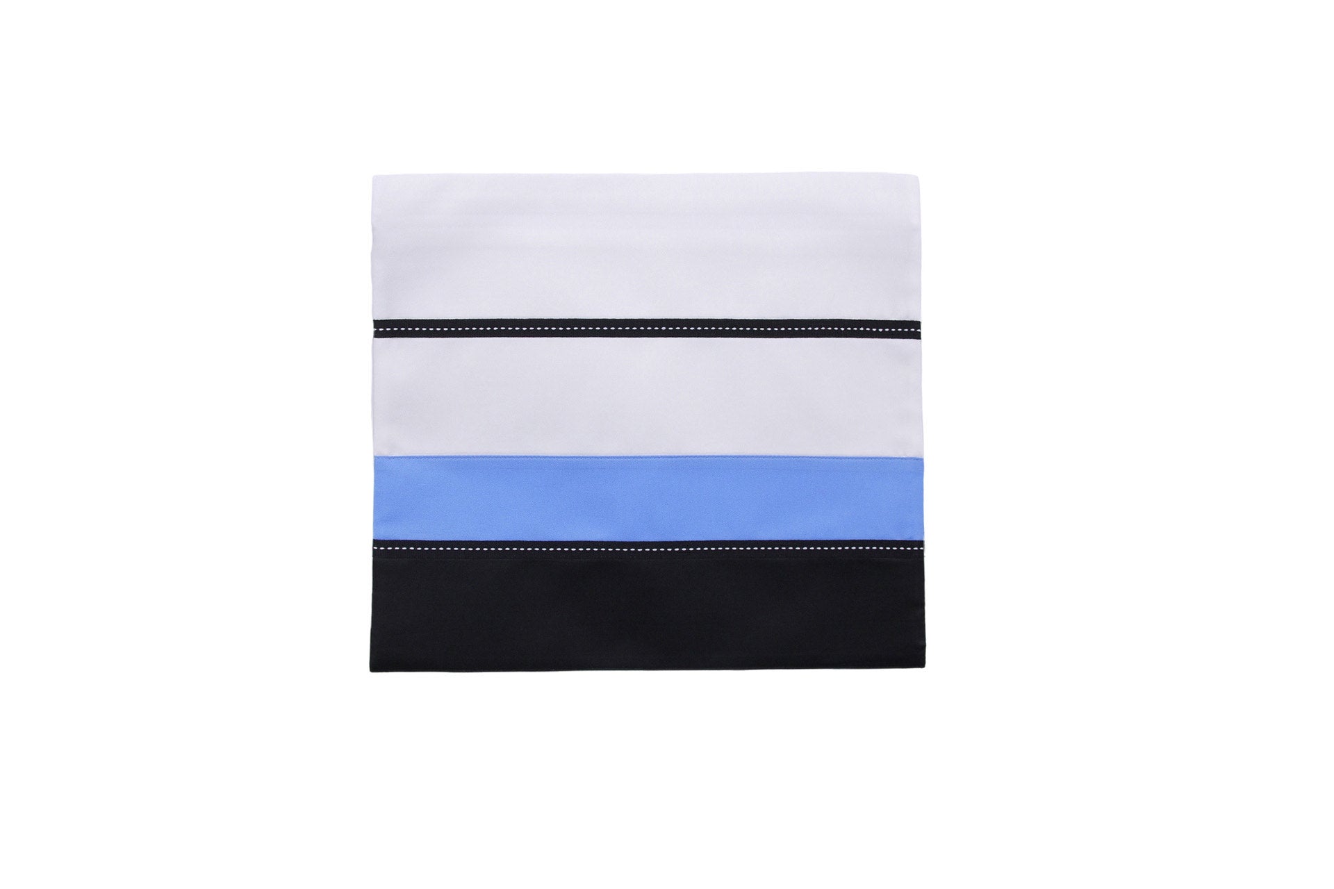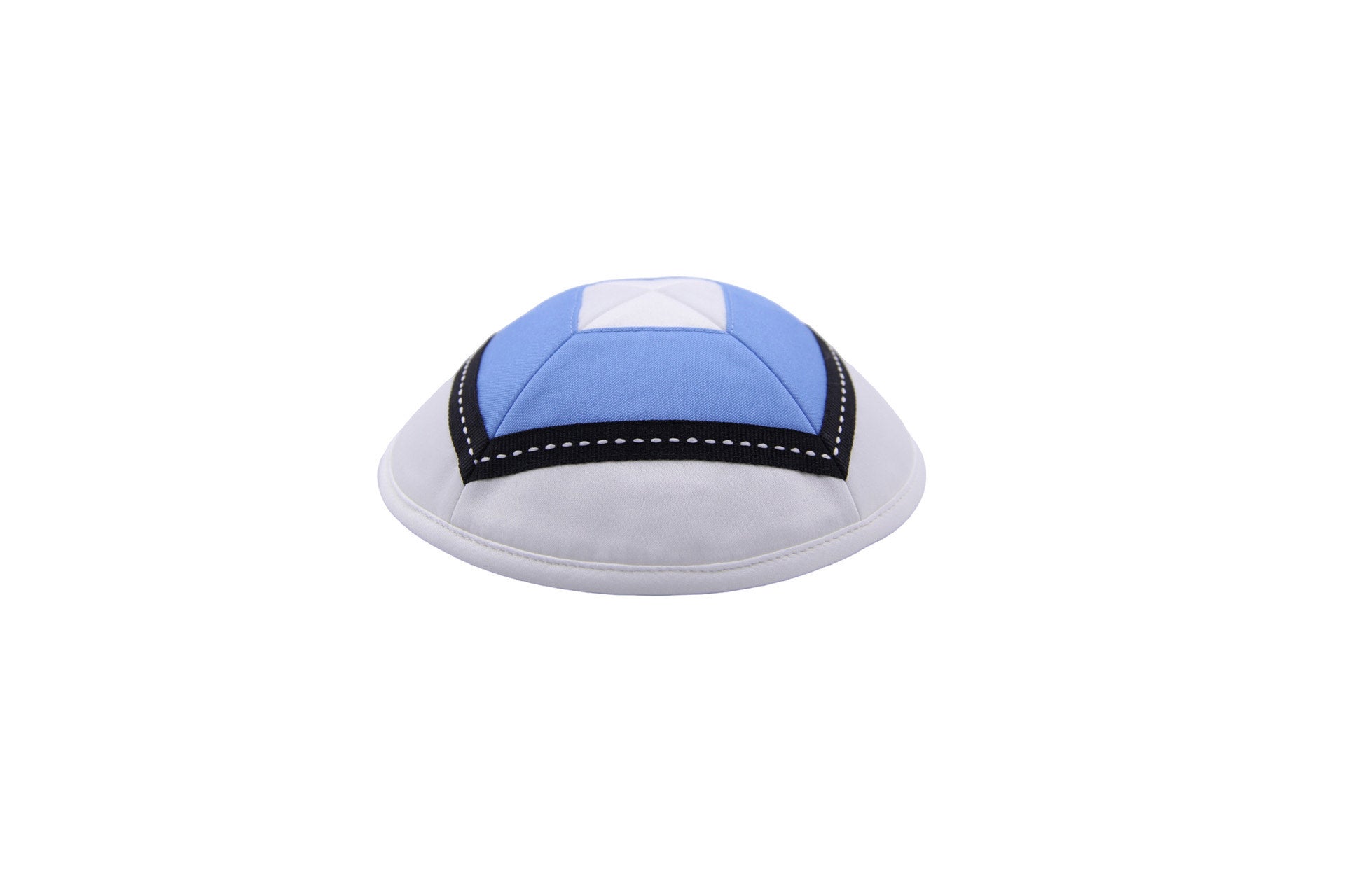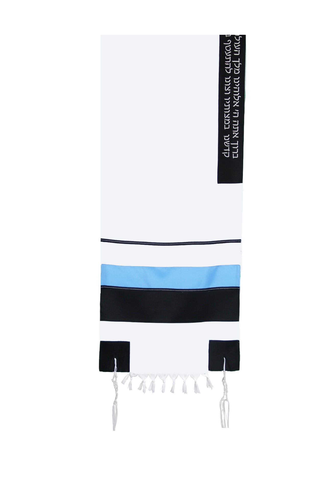 men's tallit! The tallit comes on a nice acrylic fabric with 2 different blue stripes and matching squares in all 4 corners.