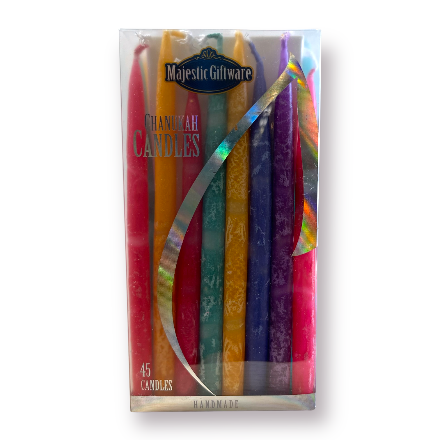 This set includes 45 premium candles in lovely shades of blue,red and orange with the exact number you need to light the festive candles all eight nights of Hanukkah!