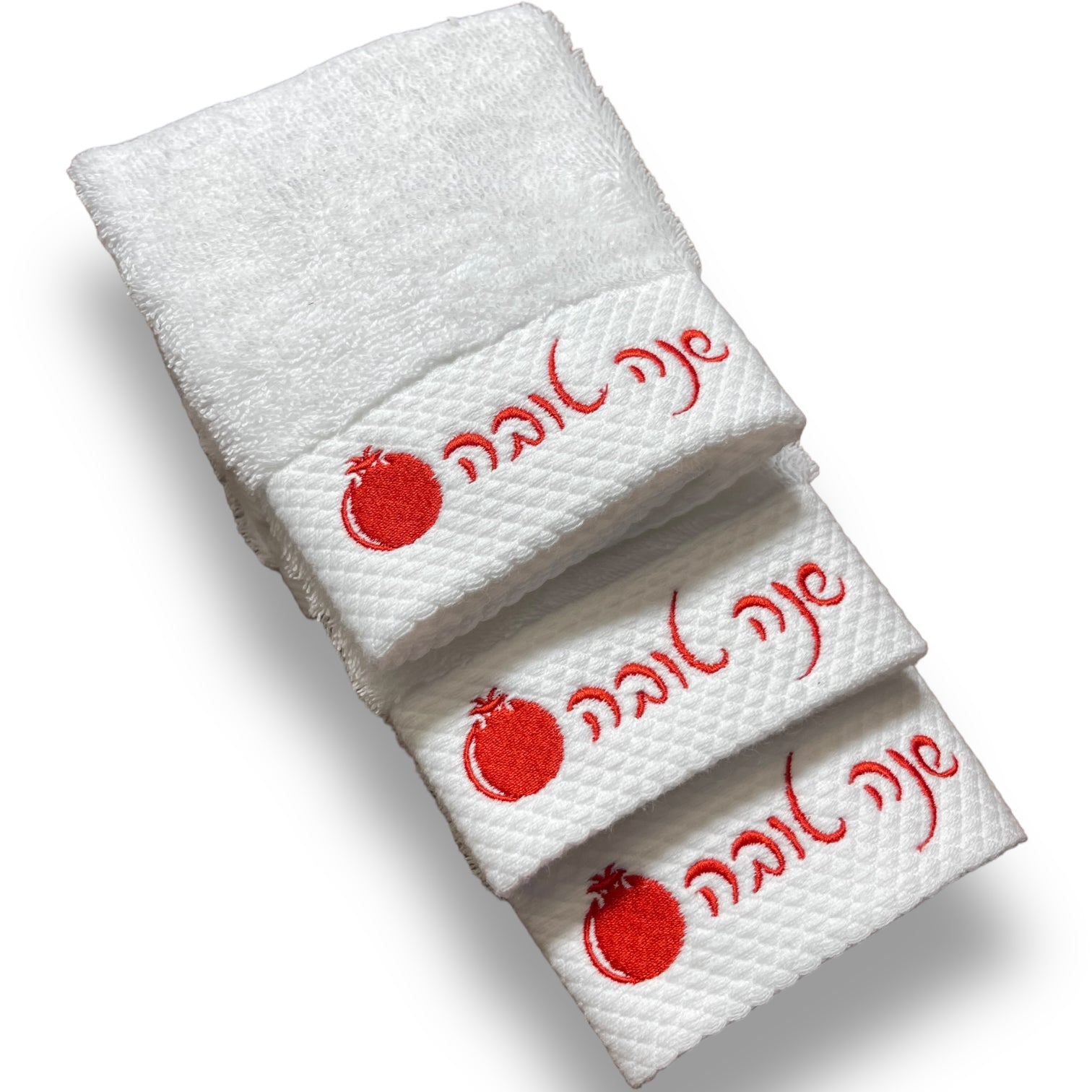 3 pack Shanah Tova embroidered 12 x 12” hand towels
