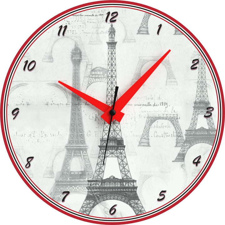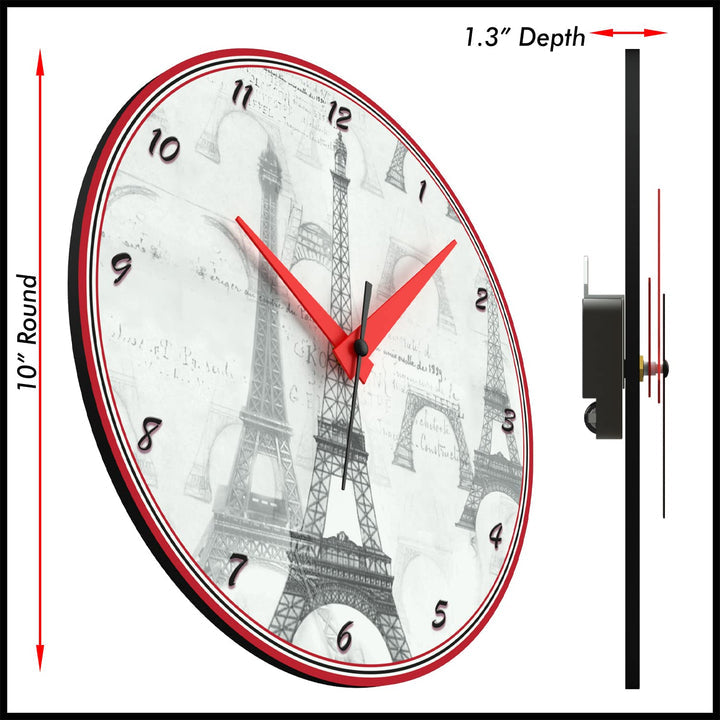 WALL CLOCK , EIFFEL TOWER B&W, 10” ROUND, ASTRA COLLECTION, SILENT NON TICKING