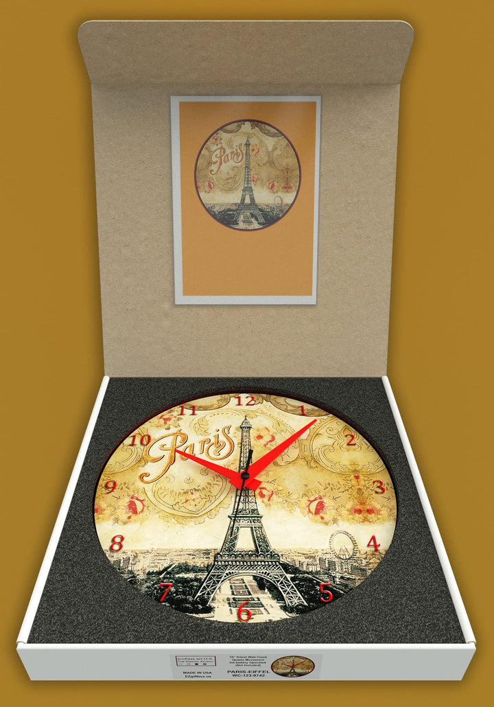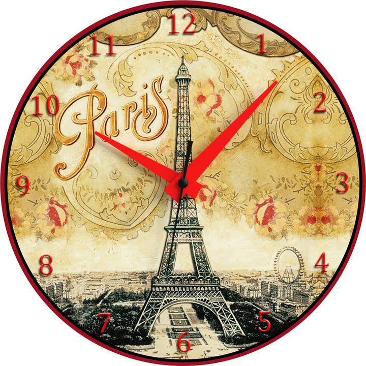 WALL CLOCK , PARIS EIFFEL, 10” ROUND, ASTRA COLLECTION, SILENT NON TICKING