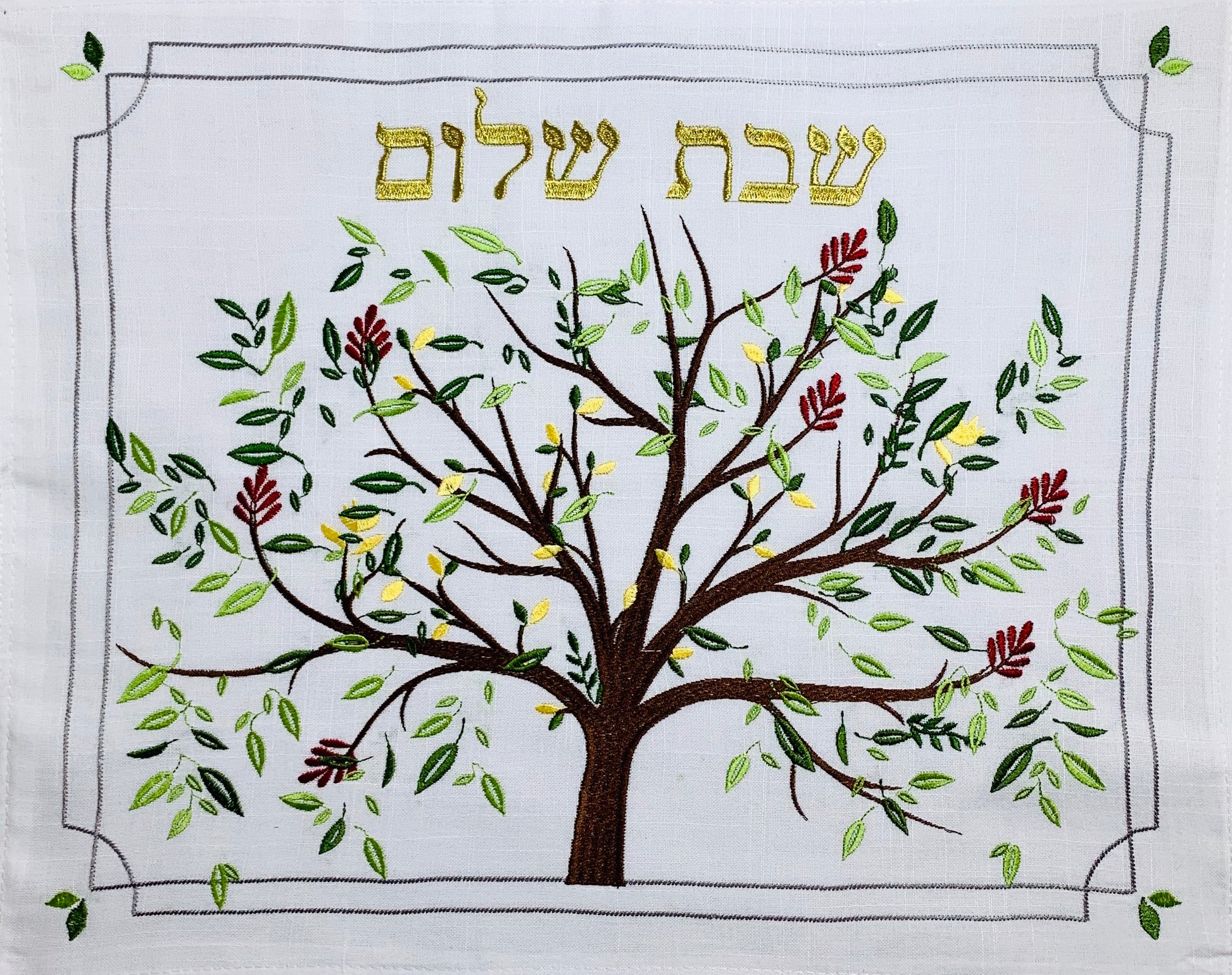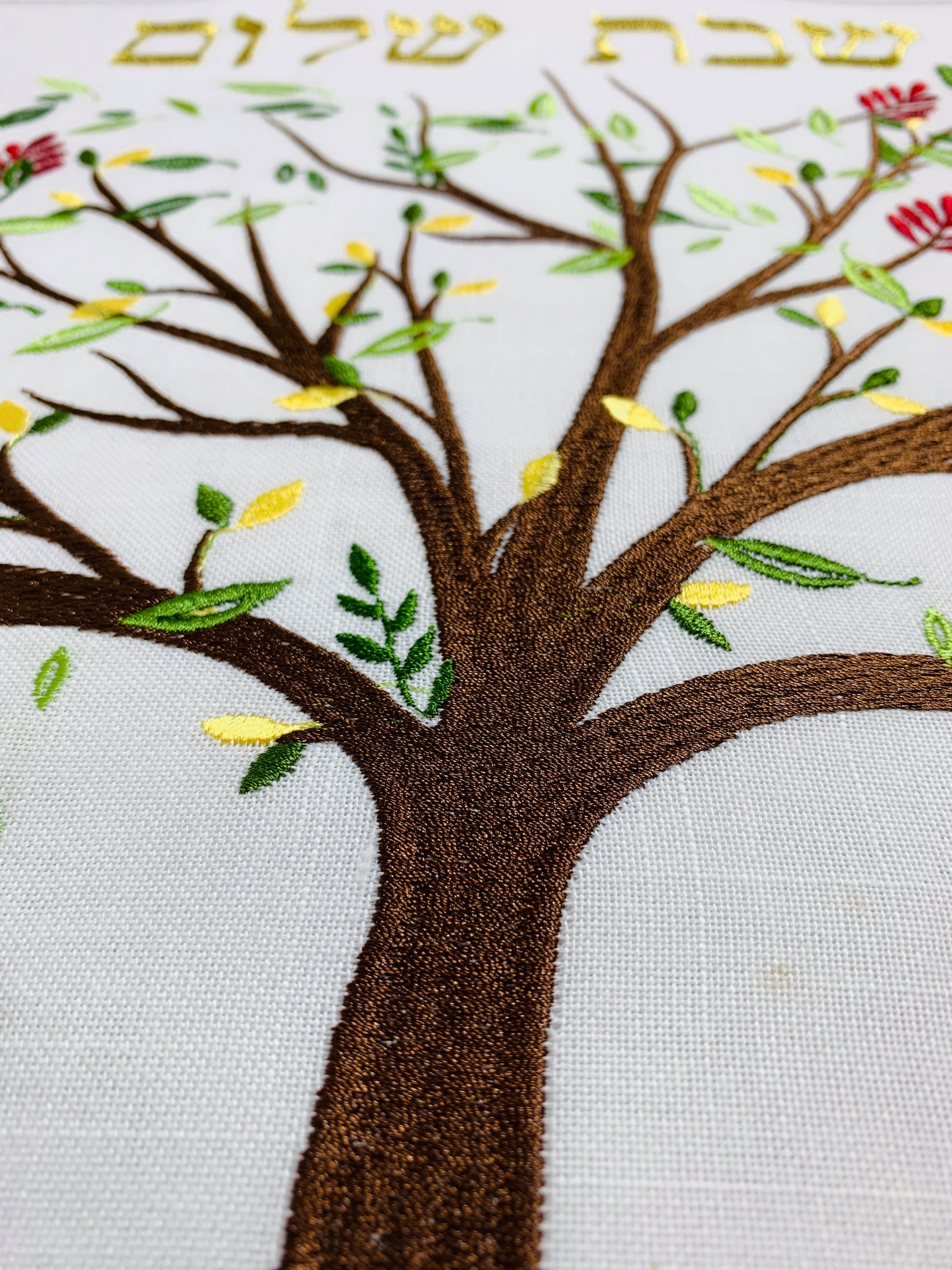 All Linen Embroidered Tree of Life עץ החיים Challah Cover