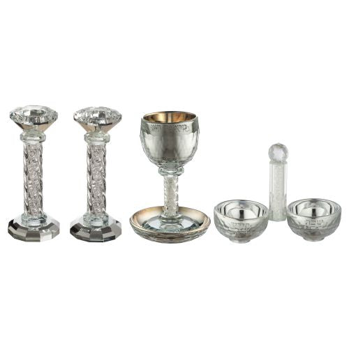 Crystal Set Of Candlesticks + Kiddush Cup + Salt & Pepper Stand with Stones