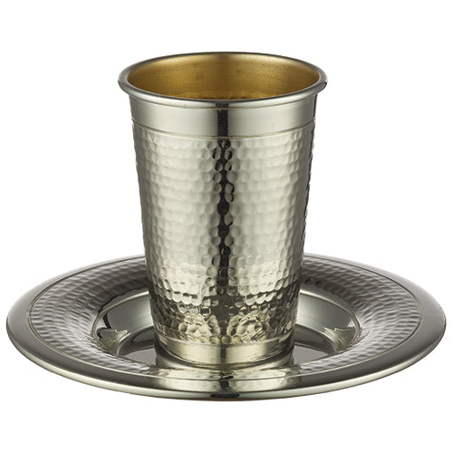 Elegant Kiddush Cup 8.5 cm with Saucer Hammared