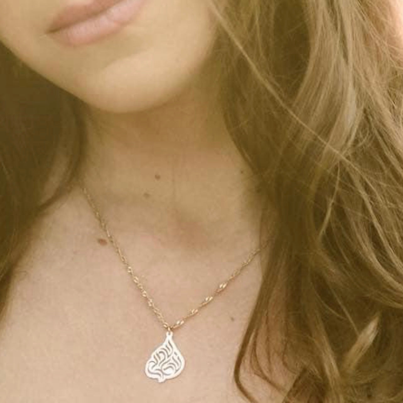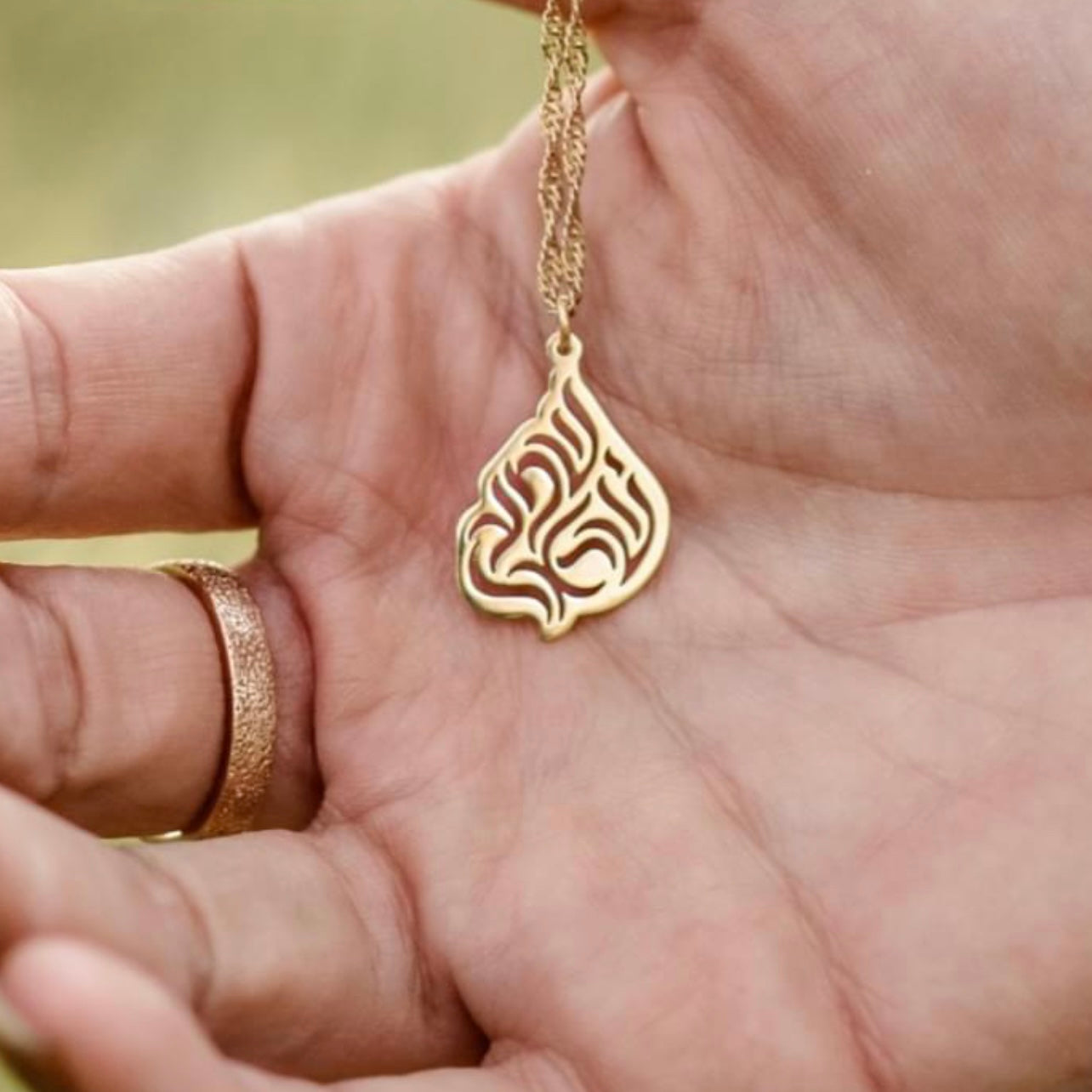 Gold plated brass pendant and gold plated necklace Shema Israel. Made in Israel