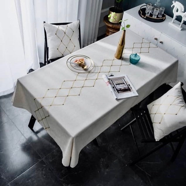 Golden classic embroidered on beautiful soft waterproof linen + 2 Matching pillowcases.
