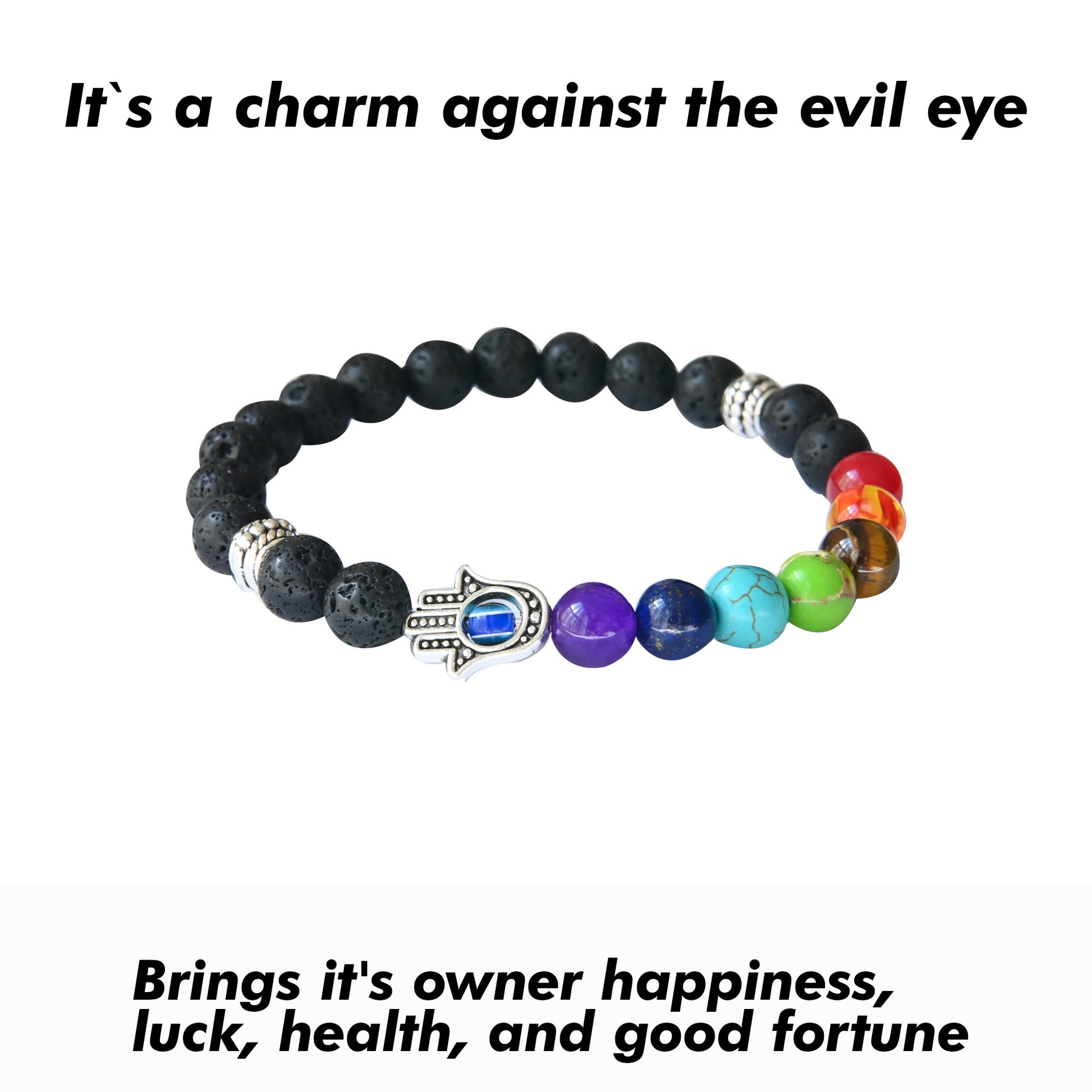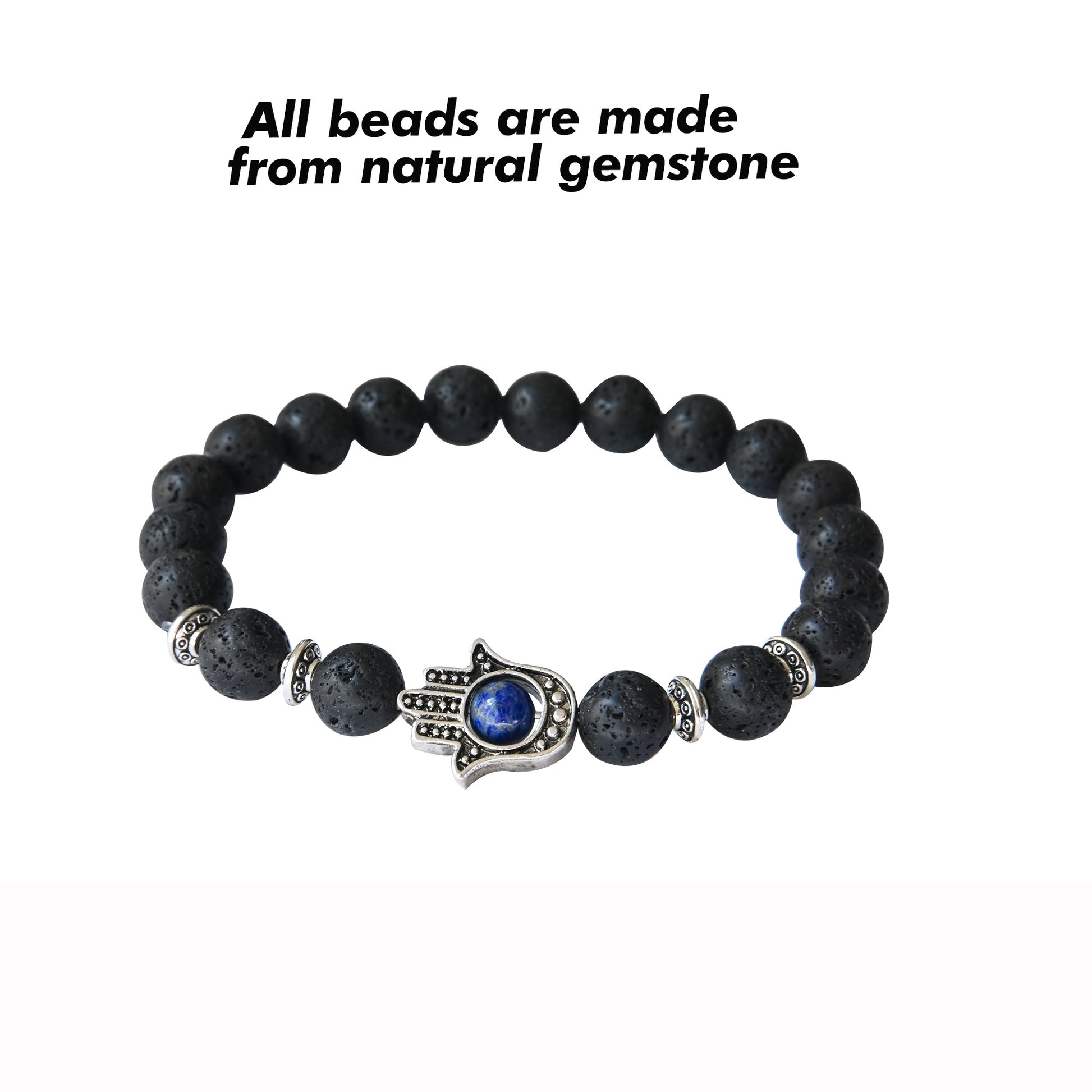 Hamsa hand bracelets 6 mm natural beads and with strong elastic cord, bracelet size 4 wrist size of 6.25 to 7 inches easy to slide on and off. All beads are made from natural gemstone.