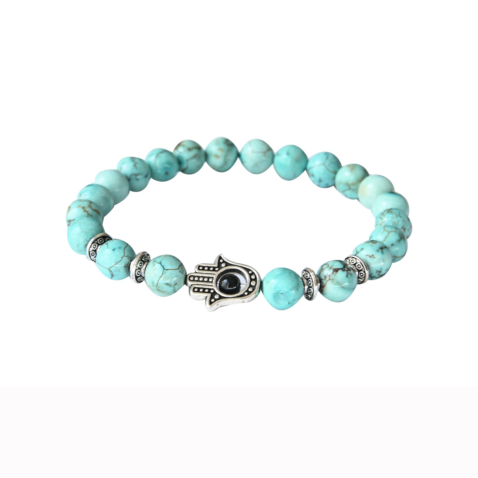 Hamsa Bracelet 6mm Natural Beads with Elastic Cord