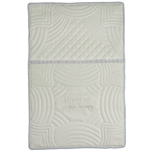 This gorgeous cushion is made from soft white Faux leather and is embroidered with זה הקטן גדול יהיה ("This young child will mature in Greatness")