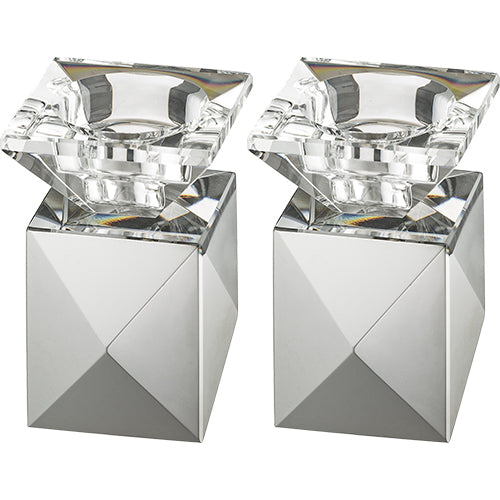 Pair of Crystal Elegant Candlesticks 9 cm silver