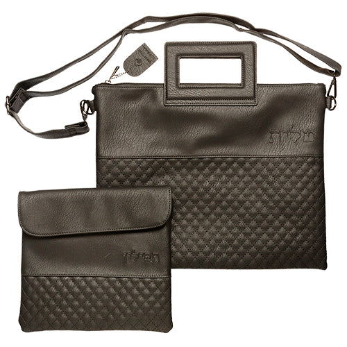 PU Fabric Talit & Tefilin Set 38*31 cm with Handles- Black