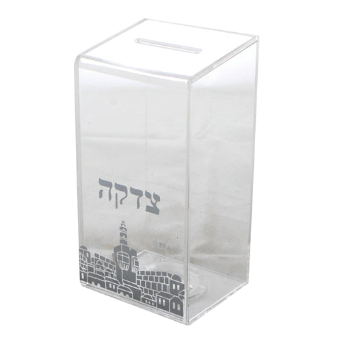 Tzedaka box Perspex 16cm To fulfill the mitzvah of tzedakah