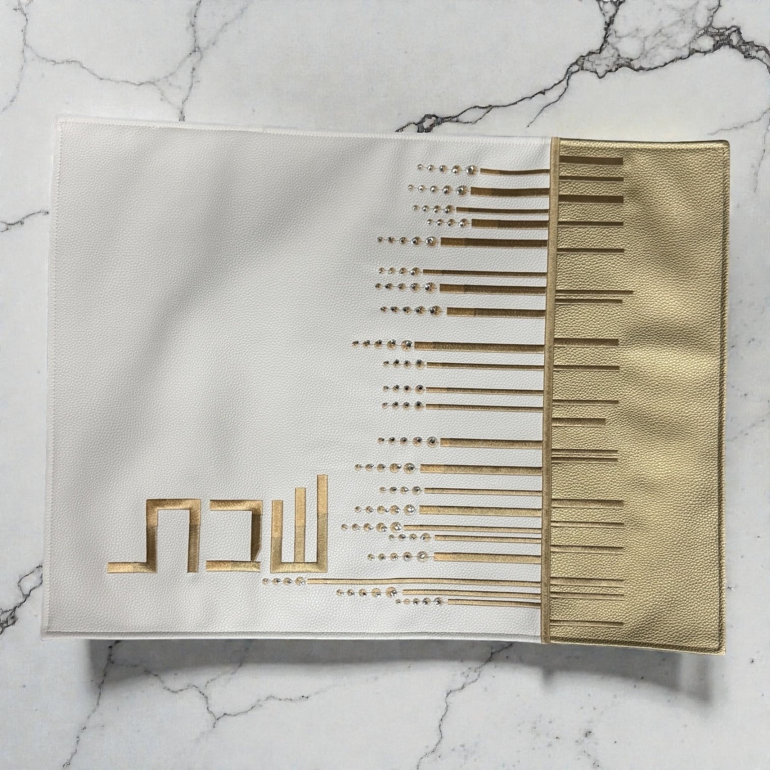 Elevate your Shabbat and holiday table with this premium vinyl challah cover (16 x 21 inches), crafted with a clean, modern aesthetic and beautiful embroidered Hebrew lettering:
