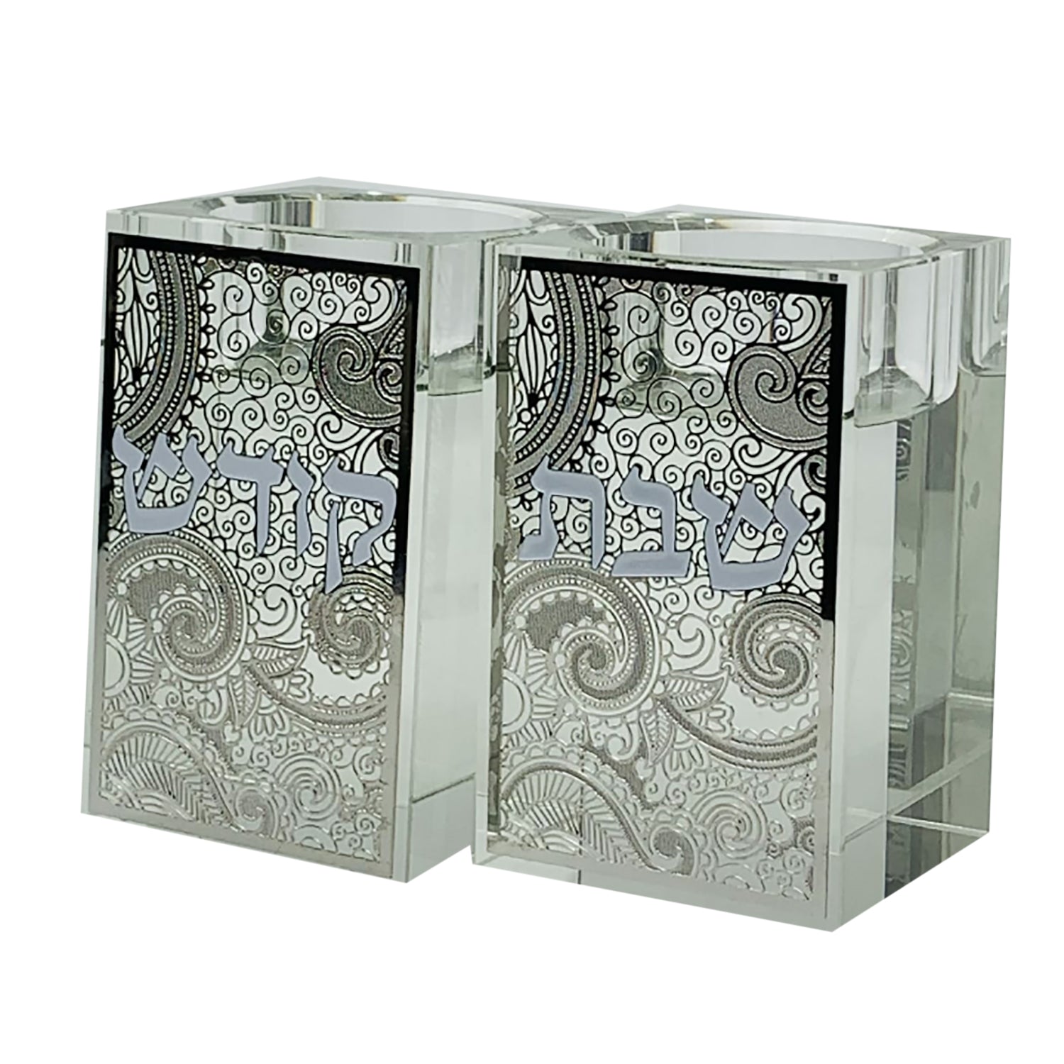 Square Crystal Candlesticks 3.15" With Metal Plaque