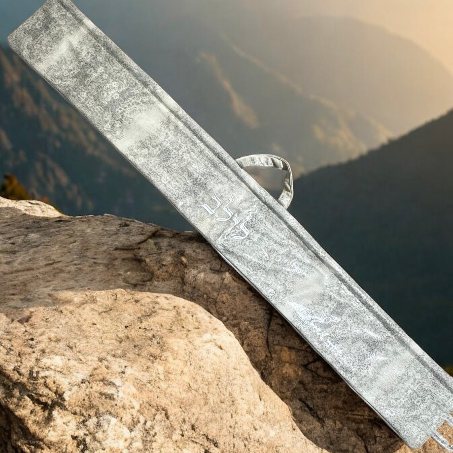 Made of high quality faux leather, the bag is decorated with silver embroidery. The bag is fitted with a concealed metal rod to keep your lulav from folding or bending.