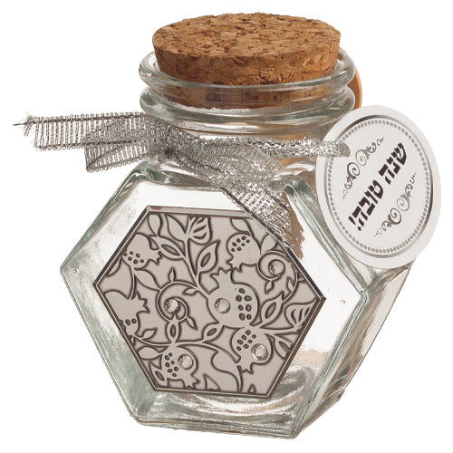 Glass Honey Dishes 6 Cm With Pomegranate plaque for rosh hashanah