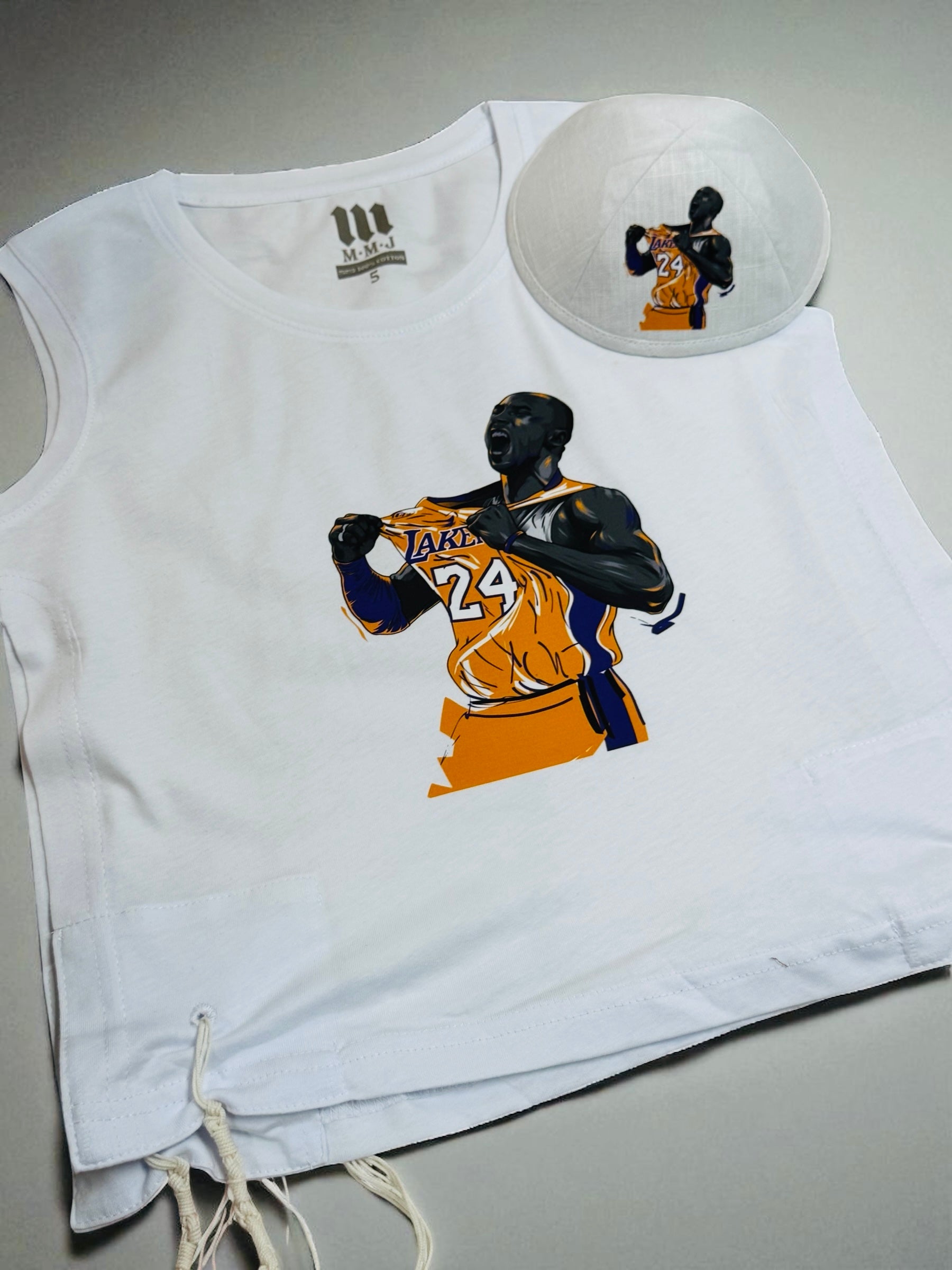 Bring some Lakers spirit to your mitzvot! This tzizit and matching kippah set features Kobe Bryant in his iconic #24 jersey — the perfect mix of tradition and hoops. A cool way to honor the Black Mamba while repping your team and your faith.