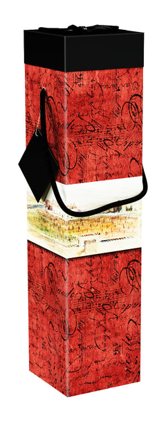 - Wine gift box includes lid, matching handle, and a card for a special message.