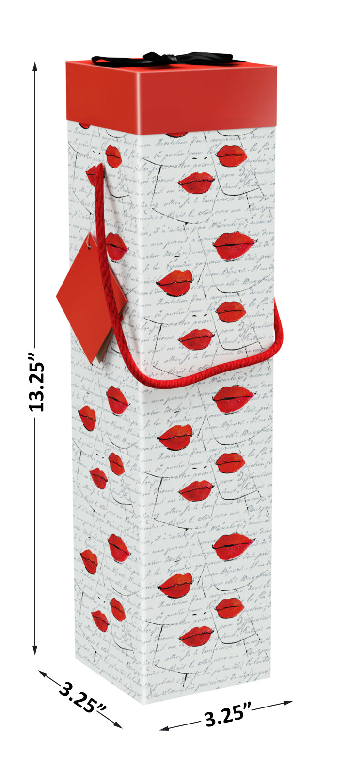 - Wine gift box includes lid, matching handle, and a card for a special message.