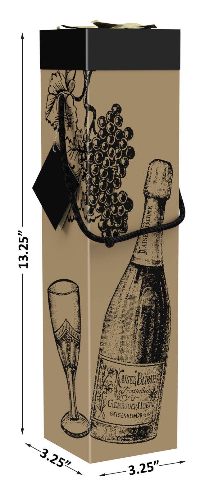 - Any occasion wine box measures 13.25" high by 3.25" wide and 3.25" long.