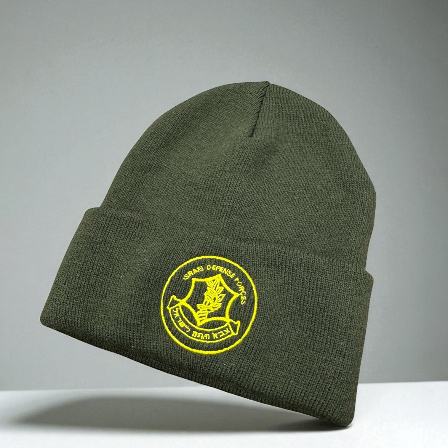 Olive Green IDF Embroidered Beanie – Israeli Defense Forces Winter Hat
