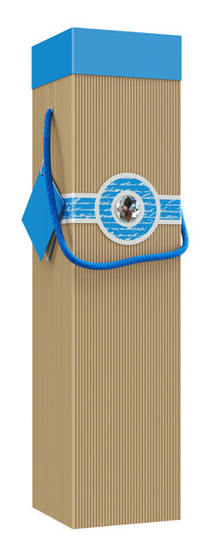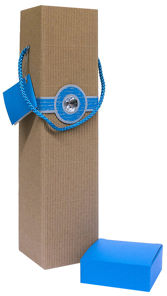 - Wine gift box includes lid, matching handle, and a card for a special message.