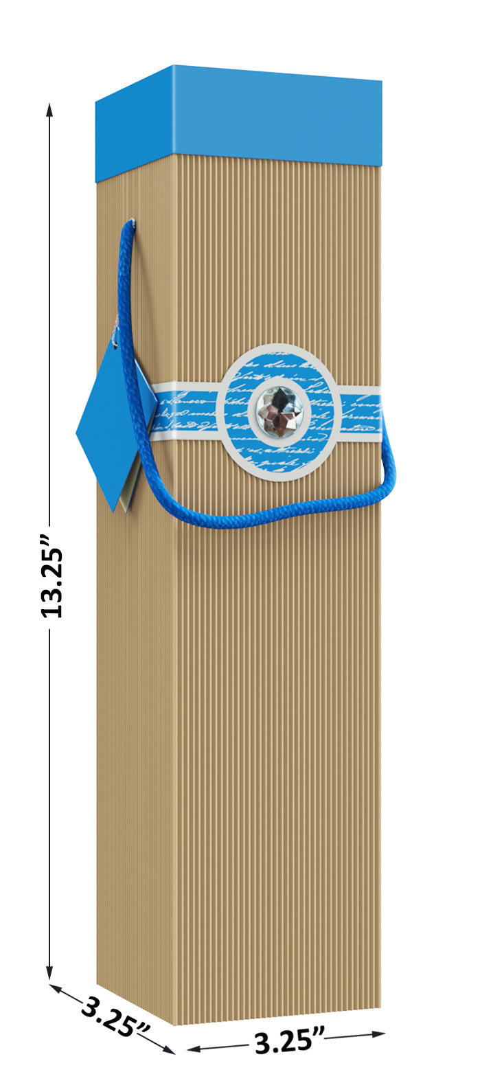 - Any occasion wine box measures 13.25" high by 3.25" wide and 3.25" long.