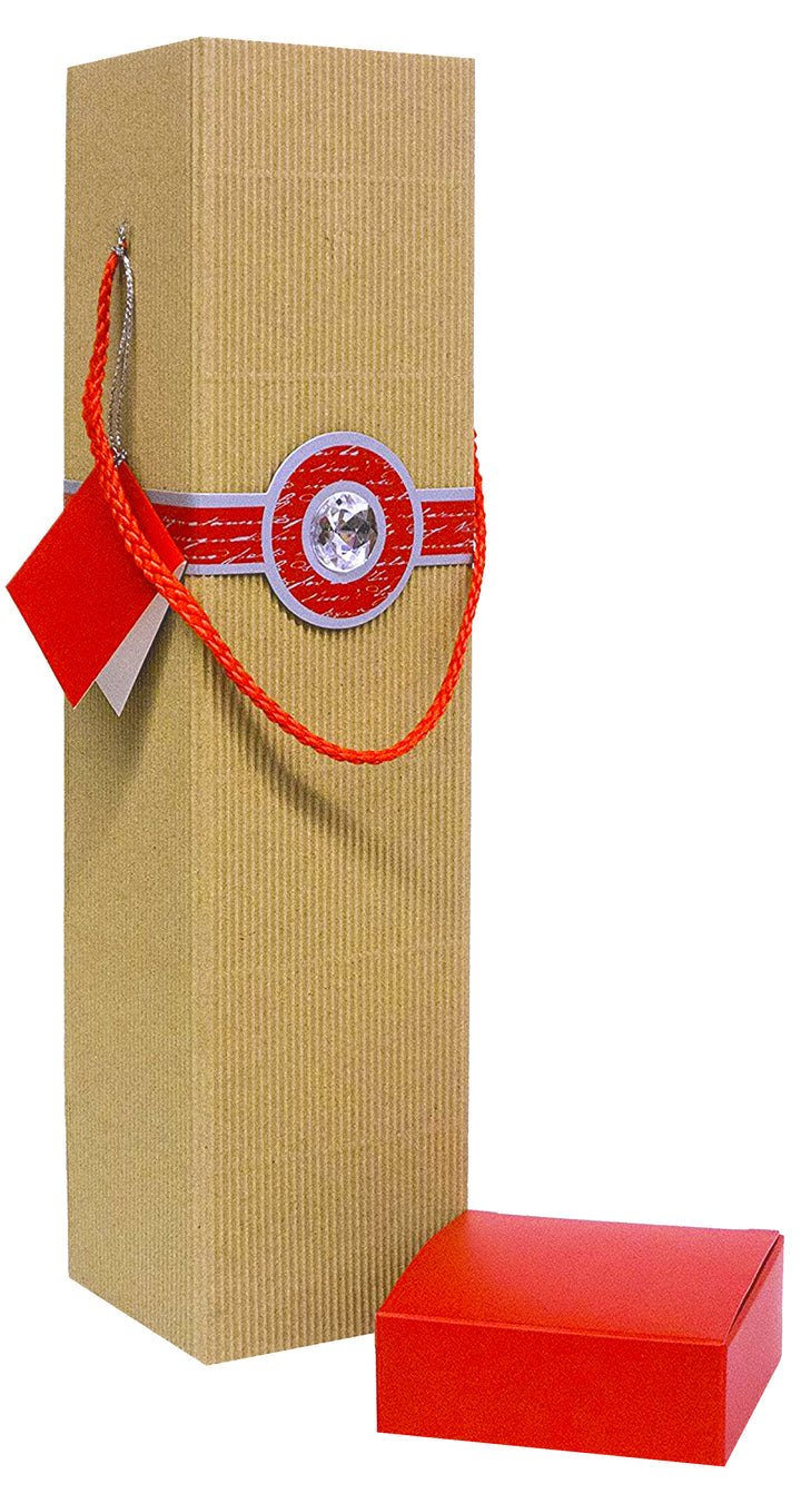 - Wine gift box includes lid, matching handle, and a card for a special message.