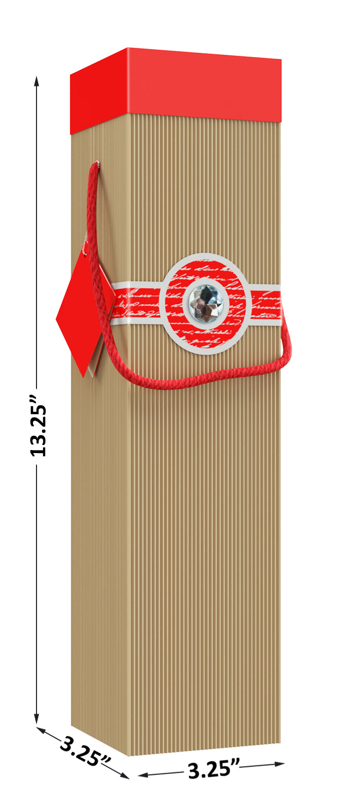 - Any occasion wine box measures 13.25" high by 3.25" wide and 3.25" long.