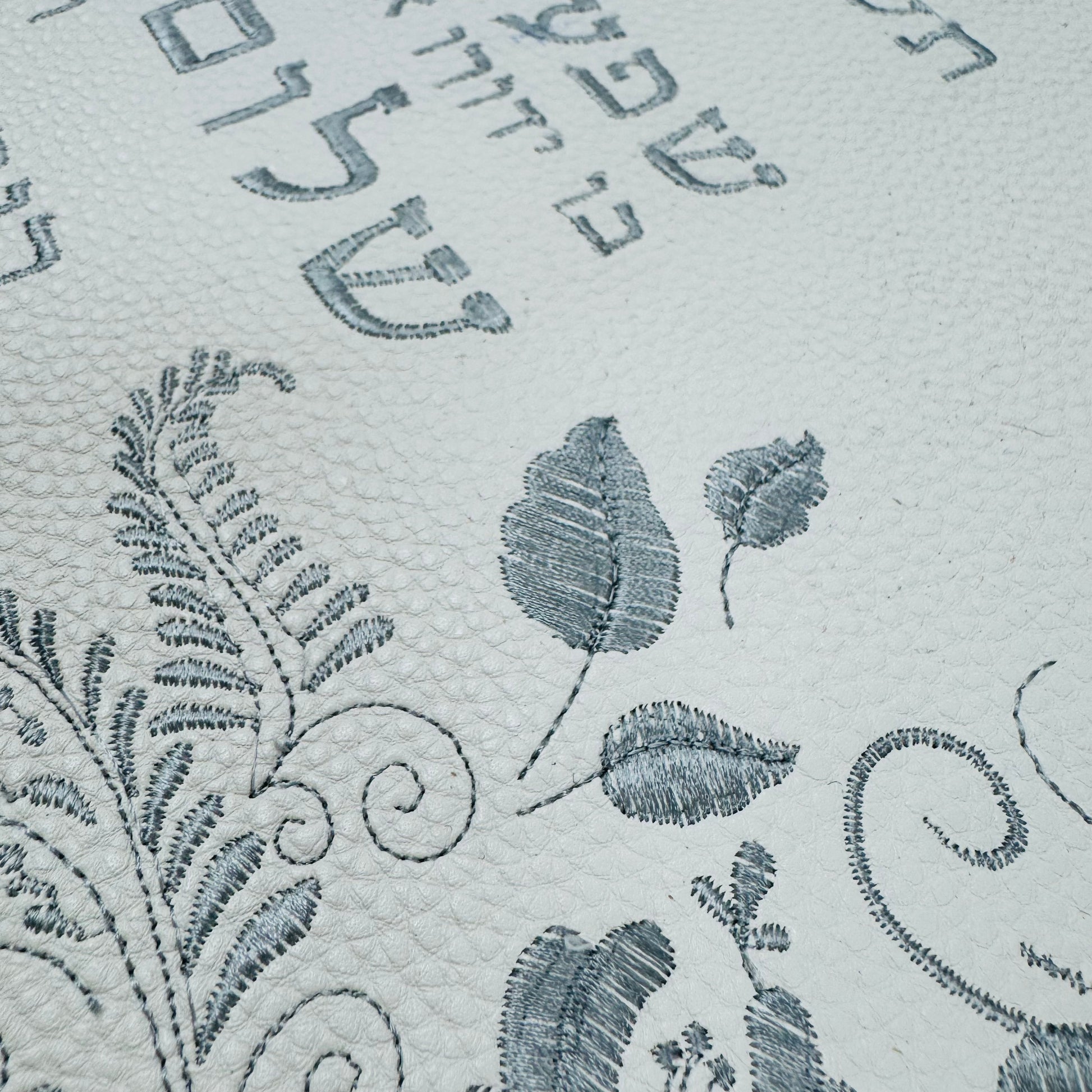 Bring tradition, elegance, and meaning into your home with this beautifully vinyl embroidered Hebrew Blessing of the Home. Designed on premium faux leather vinyl and embroidered in your choice of gold or silver thread, this piece arrives unframed so you can easily match it to your own décor and frame style.